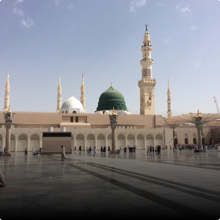 بالقرب من المسجد الحرام في مكة او المسجد النبوى في المدينة